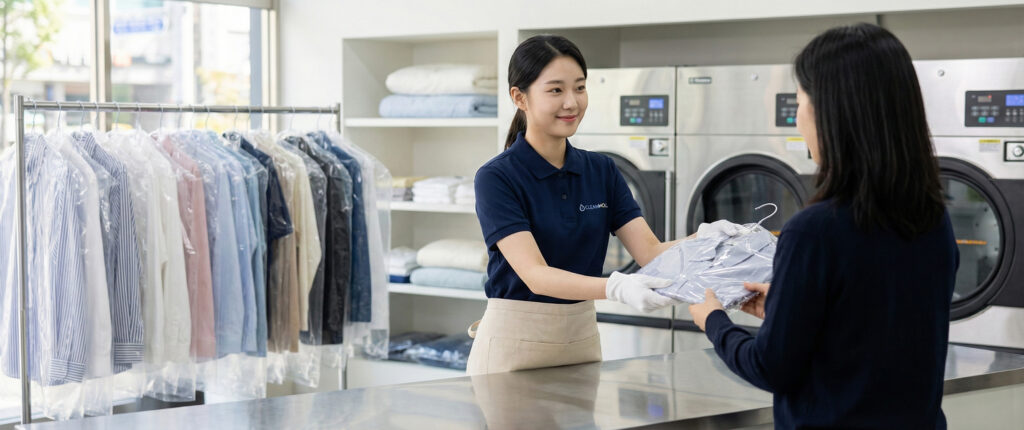 일반 세탁, 기업 세탁, 가맹점 모집 관련 상담 및 문의 응대